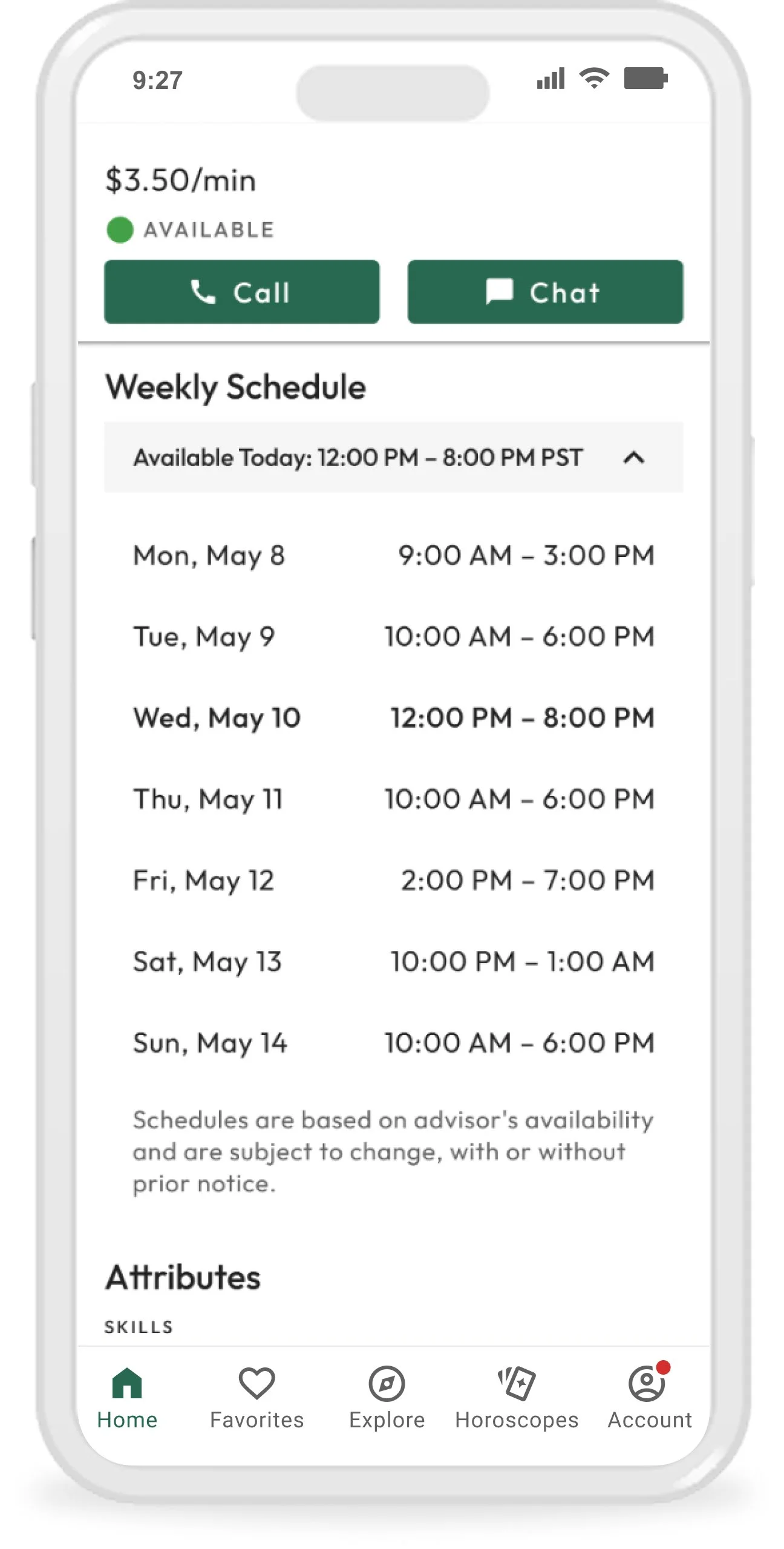 An advisor’s price per minute, ratings, reviews and availability were the most important pieces of information to customers.
