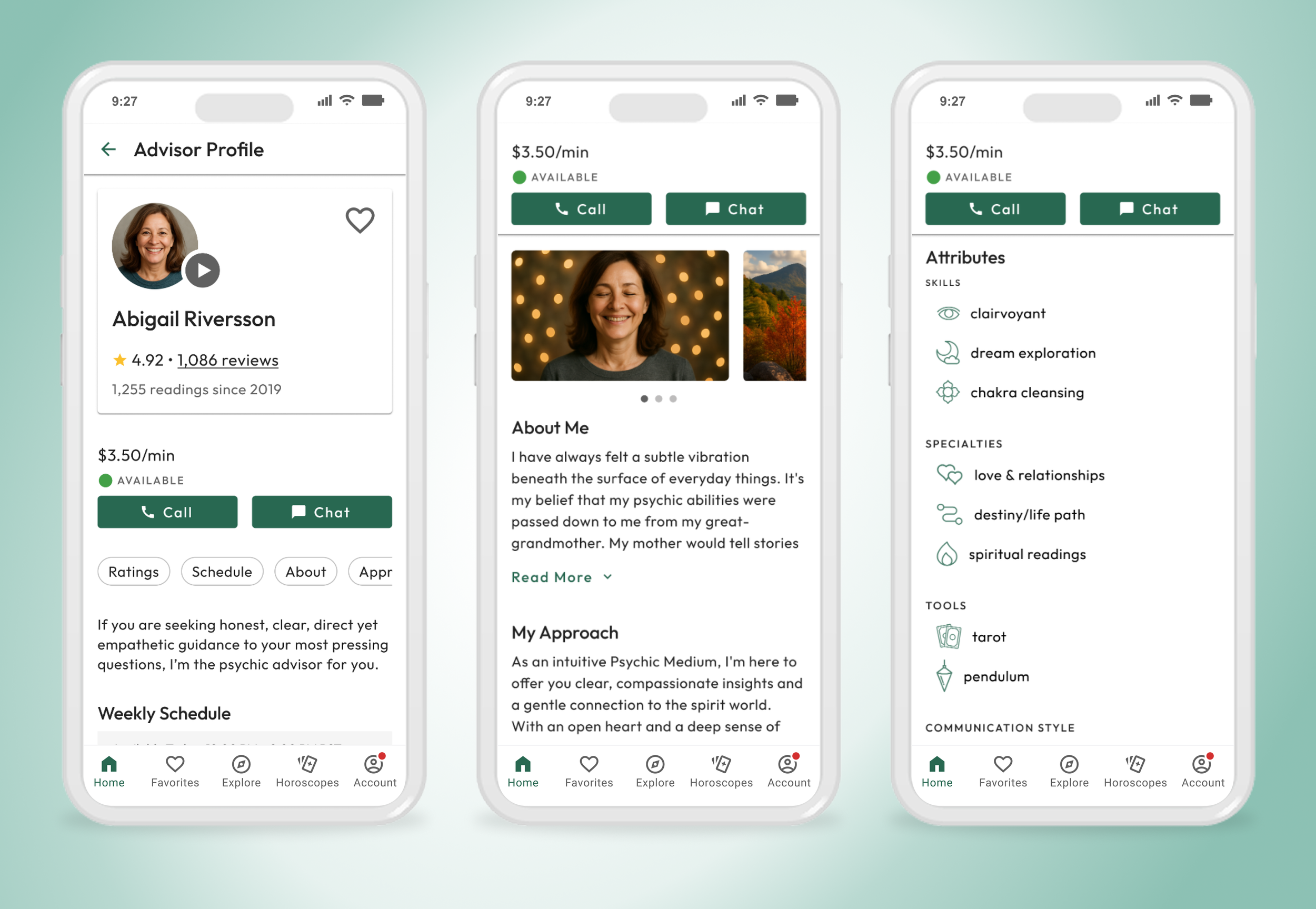 100% of customers interviewed wanted to see an introduction video from advisors and felt that it would help them decide whether or not to get a reading from them.